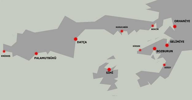 HİSARÖNÜ KÖRFEZİ (Simi Adası Dahil) Başlıca Limanlar ve Demir Yerleri İle Mesafeler