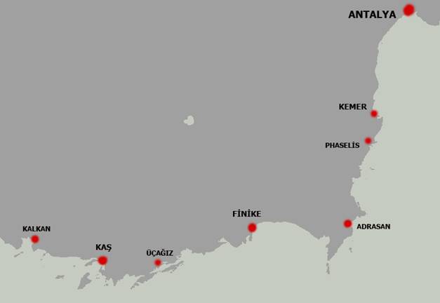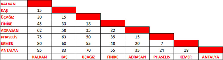 BATI AKDENİZ BÖLGESİ-II (Kalkan-Antalya Arası) Başlıca Limanlar ve Demir Yerleri İle Mesafeler