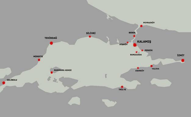 İSTANBUL BOĞAZI ve MARMARA DENİZİ Başlıca Limanlar ve Demir Yerleri İle Mesafeler